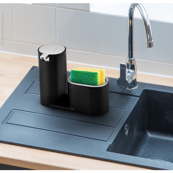 Dispenser porta Detergente Suporte Esponja Bucha Multiuso Cozinha Preto Arthi
