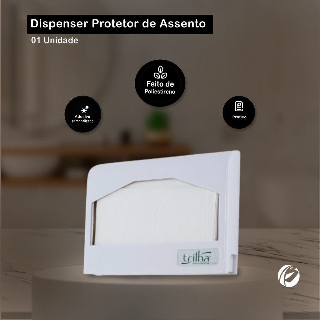 Dispenser Protetor de Assento Sanitário Trilha A função do Protetor de Assento é promover a segurança do usuário na utilização do assento sanitário, facilitando também sua retirada. Material: Poliestireno Cor: Branco Medidas: 160mm (Altura) x 220mm (Largura) x 30mm (Profundidade) Embalagem: 01 unidade