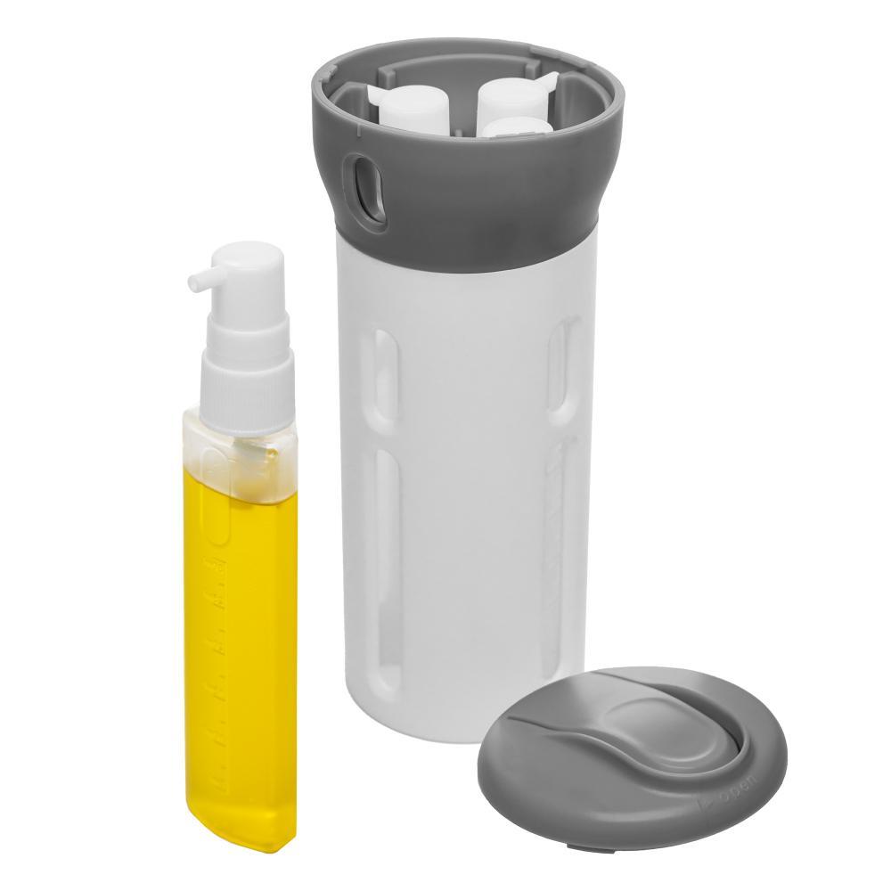 Dispenser Rotativo Portátil 4 em 1 Lyor Cinza Plástico " Viaje com praticidade e estilo com o Dispenser Rotativo Portátil 4 em 1, da Lyor. Com um design compacto e funcional, este dispenser é ideal para quem está sempre em movimento. Ele permite organizar e armazenar diversos itens essenciais, como temperos, grãos ou produtos de higiene pessoal, tornando suas viagens muito mais práticas. Viaje com praticidade e estilo com o Dispenser Rotativo Portátil 4 em 1, da Lyor. Com um design compacto e funcional, este dispenser é ideal para quem está sempre em movimento. Ele permite organizar e armazenar diversos itens essenciais, como temperos, grãos ou produtos de higiene pessoal, tornando suas viagens muito mais práticas. VersatilidadeCom quatro compartimentos, o dispenser permite armazenar diferentes produtos em um único lugar, economizando espaço na sua bagagem. Design InteligenteO sistema rotativo facilita o acesso aos itens, permitindo que você encontre rapidamente o que precisa, sem bagunça. PortabilidadeCompacto e leve, ele é fácil de transportar e se encaixa perfeitamente em qualquer mala ou mochila, ideal para viagens curtas ou longas. Modo de Usar e Limpar Para utilizar, encha cada um dos compartimentos com os itens desejados. Ao precisar de um produto, basta girar o dispenser para acessar o compartimento correspondente. Após o uso, limpe com água morna e detergente neutro Contém: 1 Dispenser Rotativo Portátil 4 Frascos Refil 40ml Lava Louça: Não Microondas: Não Forno: Não Fogão: Não Freezer: Não Medidas Produto: Altura 16,50cm x Largura 7,00cm x Comprimento 7,00cm Peso: 0,16Kg Cor: Incolor Material: Plástico Aguá corrente e Sabão