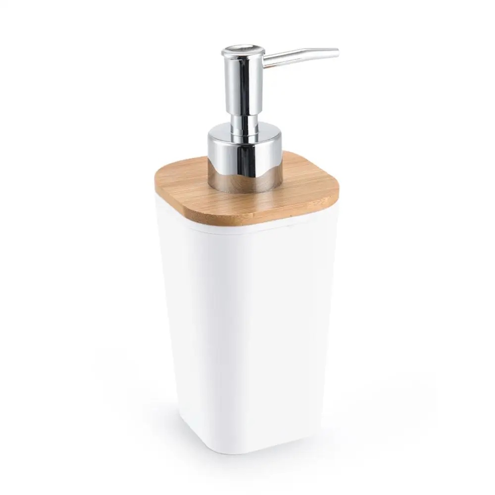 Dispenser Sabonete Liquido 400ML Saboneteira Banheiro Moderno Tampa de Bambu Lavabo Porta Detergente Cozinha Luxo