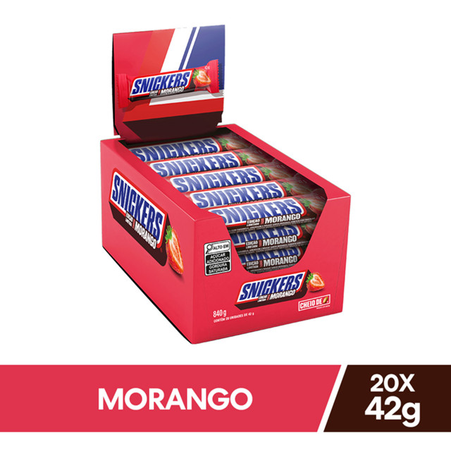 | Display Chocolate Snickers Morango Individual 42g este produto | R$ 77,99 | 8% | 4.9/5 | 2 |