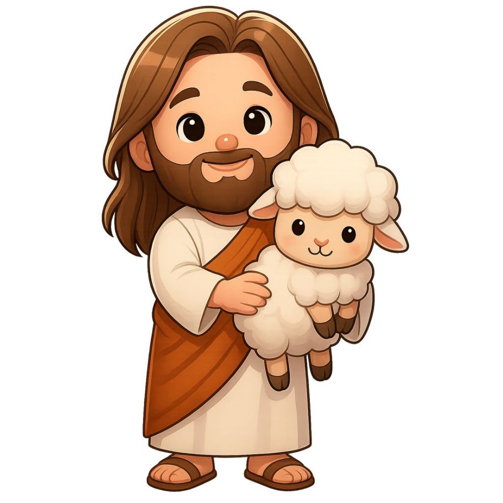 Display de Chão Mdf Decoração - Festa - Jesus Cute - Ovelha Cute - Faixa Vermelha Azul Marrom (1 Peça - Vários Tamanhos)
