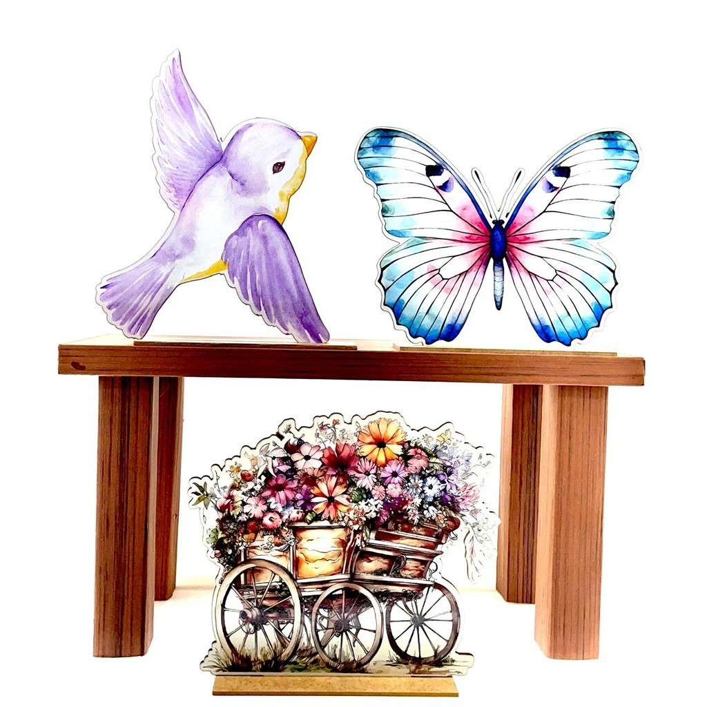 Display de Mesa Kit 6 Peças Para Festa Jardim Aquarela MDF