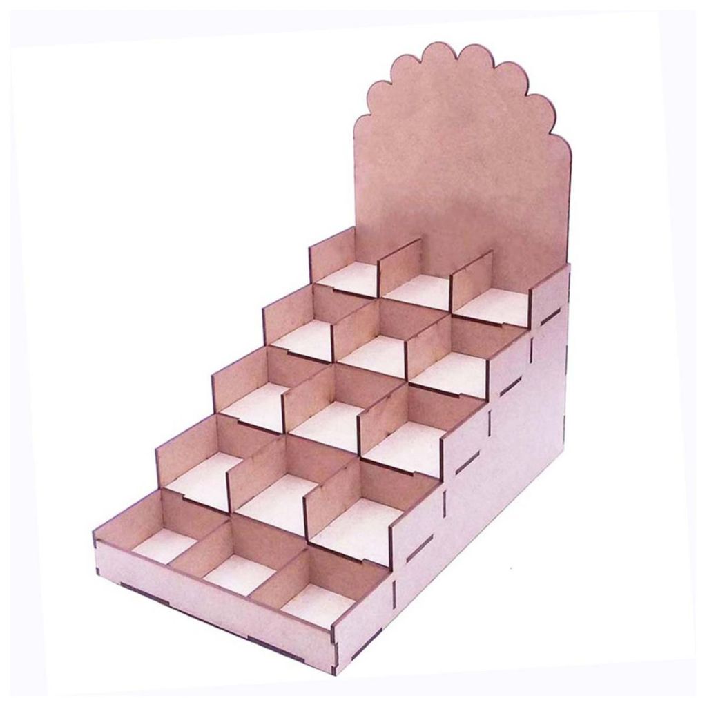 Display expositor mdf escada 5 degraus 15 lugares doce palha brownie alfajor paçoca amendoim chocolate trufa