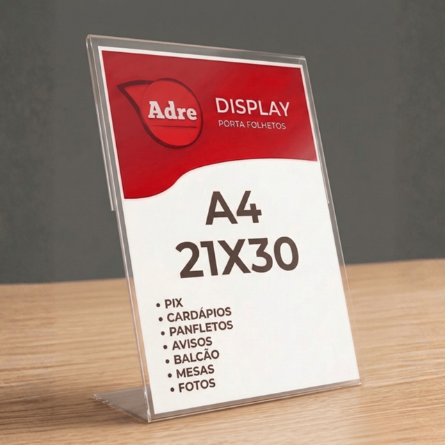 Display Expositor Suporte A4 21X30 L (ps) 2mm Acrílico Vertical Balcão Mesa
