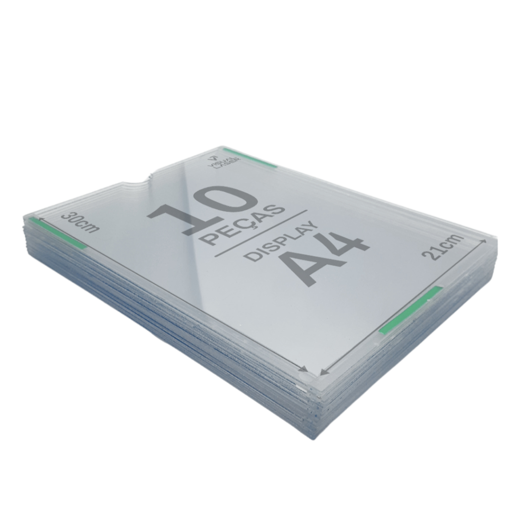 | Display Parede A4 Quadro Aviso Acrílico PS cristal 21x30cm 10peças ... este produto | R$ 144,00 | — | 5.0/5 | 5 |