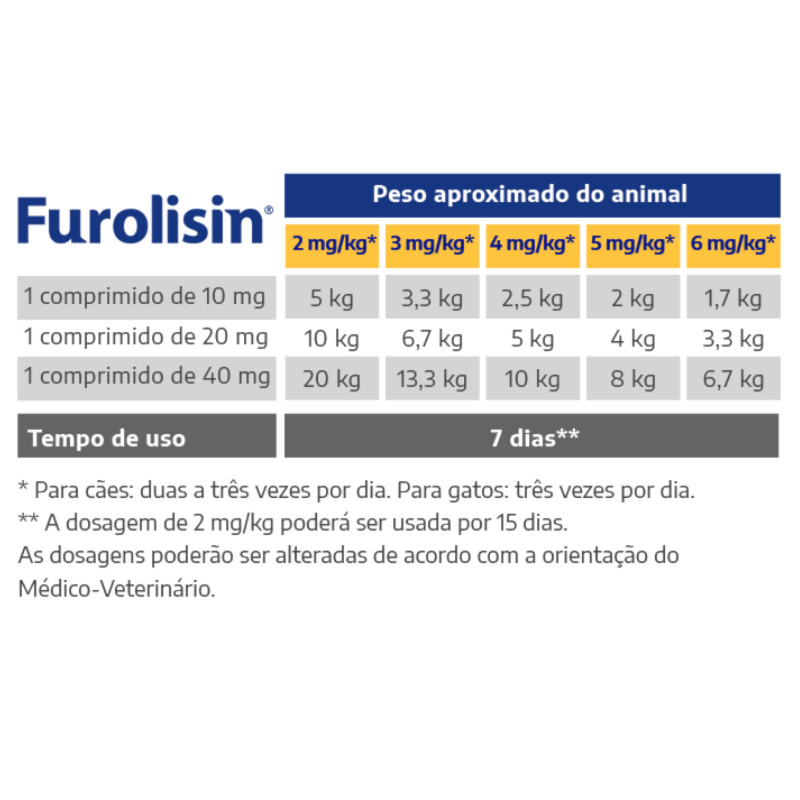 Diurético Furolisin 10mg Vetnil para Cachorros e Gatos com 10 comprimidos
