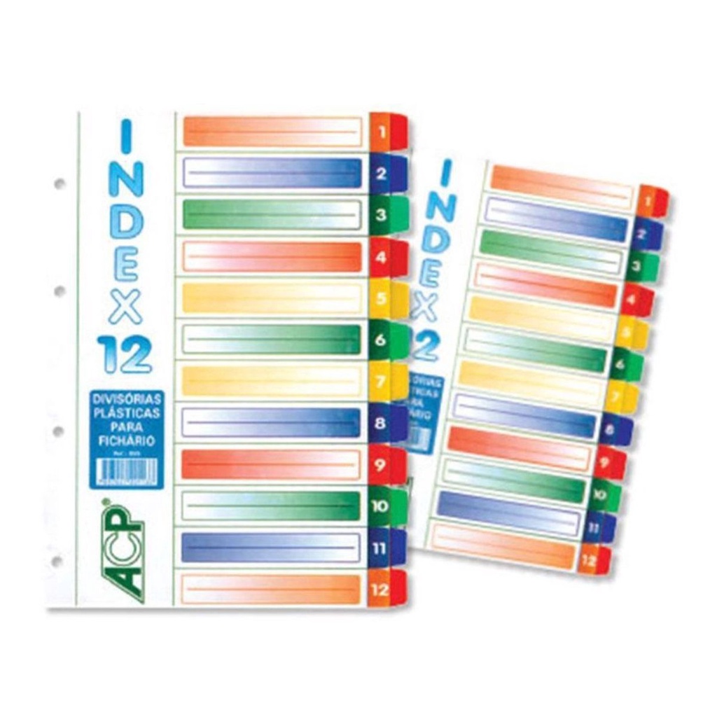 Divisória para Fichário Plástica 12 Matérias ACP Colorida