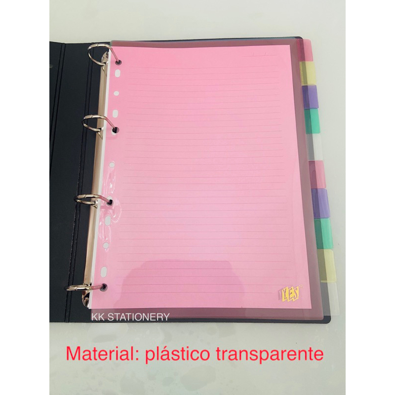 Jogo de 10 divisórias para fichário - Com visor para identificação - Tamanho A4 - Furação universal - Feita em polipropileno material leve, atóxico - Resistente e 100% reciclável - O jogo de divisorias coloridas acompanha índices coloridos personalizáveis para identificação, (cor sortida: ROS/AM/LL/VD/CR/ROS/LL/VD/AM/CR) Meidas:225x297mm