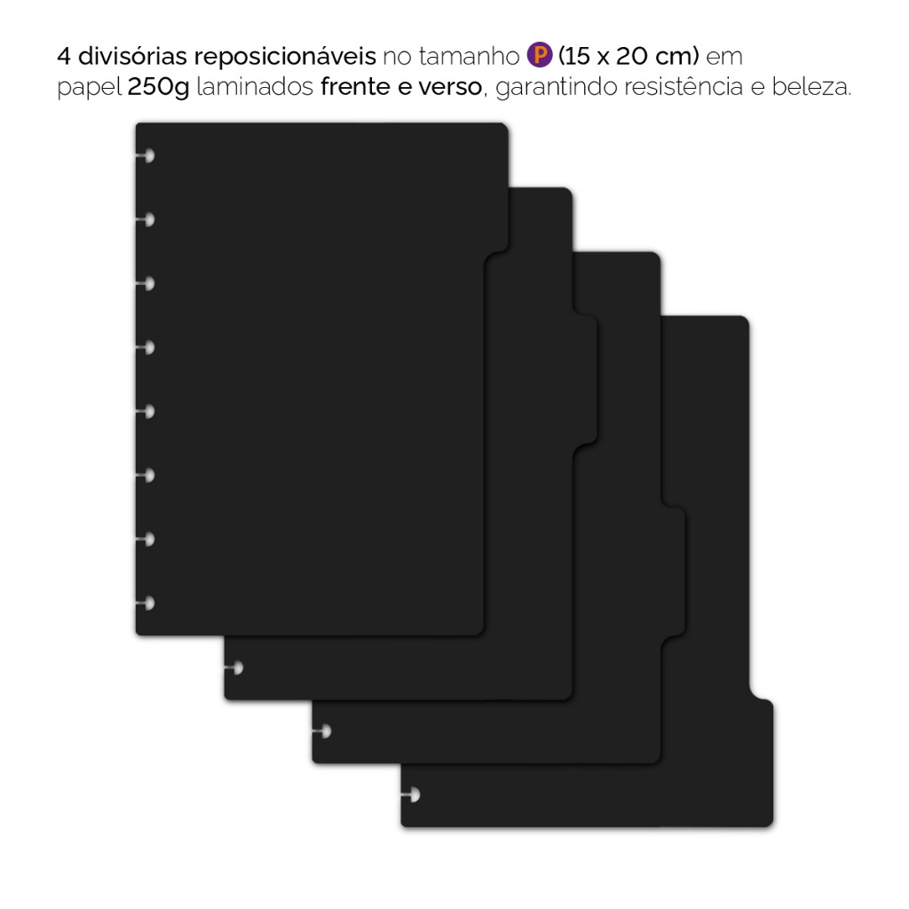 São 4 ou 6 divisórias laminadas (frente e verso), tamanho “P” (15 x 20 cm), “M” (18 x 23 cm) ou “G” (21 x 27,5 cm), em papel 250 g. >>> Esse anúncio/produto não é possível personalizar. >>> Não alteramos cor, fonte ou elementos gráficos da estampa deste anúncio. >>> ESPECIFICAÇÕES DO PRODUTO <<< - Tamanho das divisórias: 15 x 20 cm, 18 x 23 cm ou 21 x 27,5 cm. - Quantidade de divisórias: 4 ou 6 unidades. - Material: Papel couché 250g - Laminação fosca frente e verso para proteção. Com as divisórias iscool, você pode reorganizar seu caderno sempre que precisar, separando semestres letivos, matérias, assuntos diversos ou qualquer outra categoria, funcionando como o guia perfeito para sua organização. Com as abas, você encontra rapidamente o que precisa, tornando o acesso aos seus conteúdos muito mais eficiente e ágil. A embalagem contém 4 ou 6 divisórias no tamanho “P” (15 x 20 cm), “M” (18 x 23 cm) ou “G” (21 x 27,5 cm) que podem ser colocadas em qualquer local do caderno. Elas são impressas com tecnologia digital de alta qualidade em papel couché 250 g, com laminação frente e verso, o que as torna mais protegidas e resistentes. Afinal, com a iscool, legal é ser criativo, porque inteligente é você! Produzimos cadernos, agendas e produtos de papelaria há mais de 30 anos! Garantimos a qualidade e a excelência do seu produto. >>> INFORMAÇÕES DIVERSAS - Leia com atenção a descrição do produto. - Caso tenha dúvidas relacionadas ao produto, antes da compra faça quantas perguntas achar necessário. - Confira seus dados para entrega do produto (endereço completo, telefone para contato, etc.). Não nos responsabilizamos por endereços e locais de entrega incorretos ou por dados incompletos. - Após a compra, se sentir a necessidade de conversar conosco, nos acione através do chat (mensagens). - Valores sujeitos à alterações sem aviso prévio, garantimos o valor somente após compra realizada.