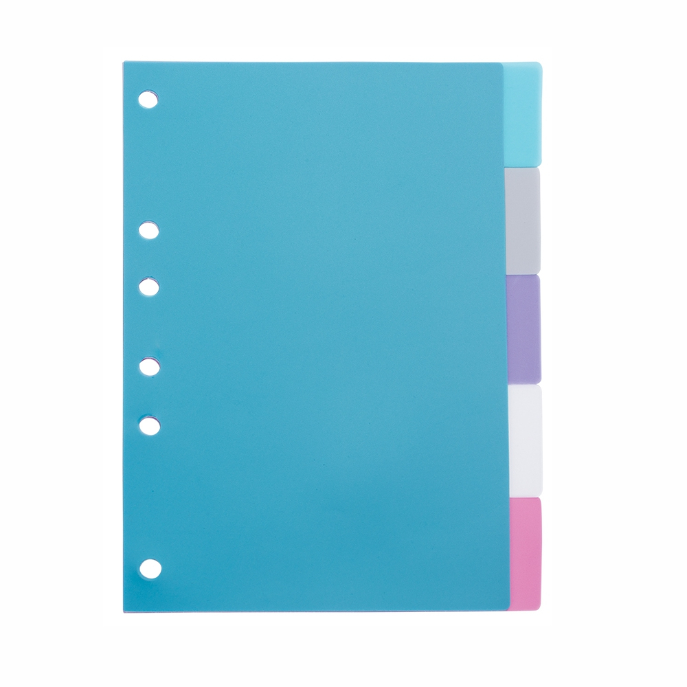 Divisórias para fichário com 5 projeções, furação universal, Colorida, Plascony