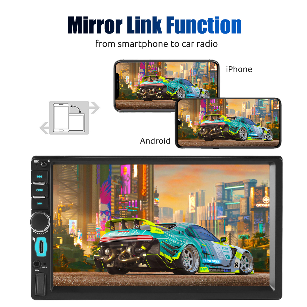 【Botões Físicos e Tela Sensível ao Toque de 7 Polegadas】 A tela sensível ao toque permite operar o sistema com apenas um toque e suporta reprodução de vídeo, oferecendo uma maneira de se entreter e reduzir o tédio quando você parar de dirigir. Há também botões físicos disponíveis. 【CarPlay e Android Auto】 Os recursos integrados Apple CarPlay e Android Auto integram perfeitamente seu iPhone com a tela LCD capacitiva sensível ao toque de 7 polegadas da central multimídia e os controles via conexão USB. Agora você pode fazer chamadas, acessar suas músicas, enviar e receber mensagens, obter rotas e muito mais, mantendo o foco na estrada. Você também pode ativar a assistente de voz Siri para tornar a operação ainda mais fácil. 【MirrorLink para Sistema Duplo】 O MirrorLink é um padrão de interoperabilidade de dispositivos que oferece integração entre um smartphone e o sistema de infoentretenimento do carro para criar um Sistema Duplo. Uma vez conectado, você pode aproveitar as funções de qualquer aplicativo do seu telefone, como navegação GPS ou reprodução de vídeos. Descrição: 1. Função Bluetooth: O Bluetooth integrado permite a transmissão de áudio sem fio, e o microfone embutido possibilita chamadas em modo mãos-livres. Resolva o problema de chamadas enquanto dirige. Além disso, conecte o celular via Bluetooth para ouvir o GPS e suas músicas favoritas no carro. 2. Multifuncional: Saída USB de alta potência, permite carregar celulares. Funciona como reprodutor de MP5, rádio, sensor de ré, etc. Esta é a melhor opção para suas viagens. 3. Suporte: entrada de vídeo para câmera de ré 4. Modo de detecção de ré: acionado 5. Suporte: função de alerta de freio 6. Suporte: controle do volante 7. Suporte: Bluetooth. 8. Frequência de rádio: 87,5M-108m 9. Interface: USB / TF / AUX IN 10. Formato de áudio: MP3 / WMA / WAV / OGG / FLAC / APE 11. Formato de imagem: JPG 12. Suporte: botão de reset 13. Tipo de plugue: plugue ISO 14. Terminal RCA: saída de vídeo, entrada de vídeo, entrada reversa, saída de áudio, entrada de áudio AUX 15. Suporte técnico: chinês, inglês, turco, francês, português, russo, espanhol, japonês, coreano, etc. Especificações 1. Tipo: reprodutor MP5 dual-tone universal de alta definição 2. Tamanho da tela sensível ao toque: 7 polegadas 3. Sistema: wince 4. Tipo de material: metal 5. Memória externa máxima: 32 GB 6. Chip decodificador: Allwinner C200S 7. Controle de volume: +/- 8 dB (grave 100 Hz, agudo 10 kHz) 8. Voltagem: DC 12 V 9. Faixa de ajuste de modulação de frequência: Faixa de ajuste: 87,5-108 MHz Sensibilidade aplicável: 15 dB Relação sinal/ruído: 50 dB Resolução estéreo: 30 dB 10. Resolução da tela: 800 x 480 11. Dimensões do painel: 178 mm x 103 mm Profundidade do aparelho: 59 mm 12. Potência de saída do amplificador/número de canais: 45 W * 4 Conteúdo da embalagem: 1 * Reprodutor multimídia 1 * Câmera de ré com 12 LED (opcional) 1 * Controle remoto 1 * Cabo de alimentação 1 * Manual do usuário 1 * Controle de volante