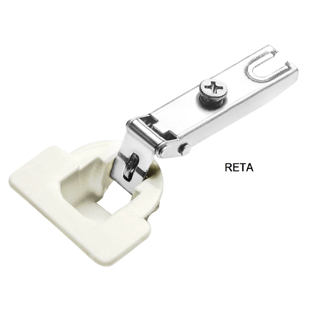 04 UNIDADES DE DOBRADIÇA 26MM SEM CALÇO (Compatível com armários Itatiaia) Não necessário a utilização de parafusos. Dobradiça em aço e plástico. Abertura de 95 graus. Caneco plástico branco. Sistema clic. Produto disponível no modelo reta/baixa e curva/alta.