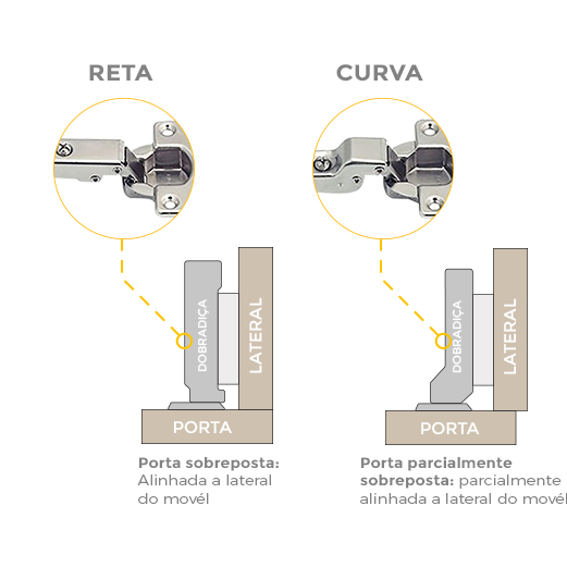 Dobradiça para Armário Móveis Mini 26mm Curva e Reta com Parafusos