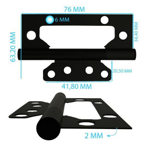 Dobradiça Sobrepor Aço Preto Com Rolamento 3"x2-1/2" Kit 3 Uni