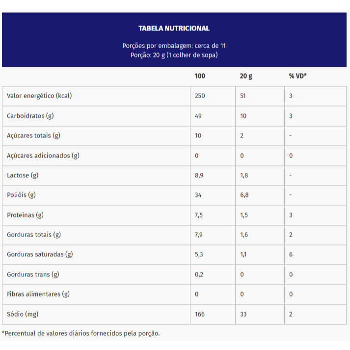 Linea Doce de Leite com Coco possui uma cremosidade que vem do cozimento. Sem adição de açúcares, é adoçado com sucralose, o adoçante derivado da cana de açúcar que contribui para a redução de sódio e calorias. Com coco ralado integral, baixo teor de sódio, contém 51 kcal por colher, e pode ser utilizado para o preparo de doces ou sobremesas. INGREDIENTES leite integral, coco ralado integral, cloreto de sódio, edulcorantes: sorbitol esucralose, conservante sorbato de potássio, regulador de acidez bicarbonato de sódio, espessante pectina e estabilizante citrato de sódio. CONTÉM LEITE. PODE CONTER NOZES. CONTÉM LACTOSE.
