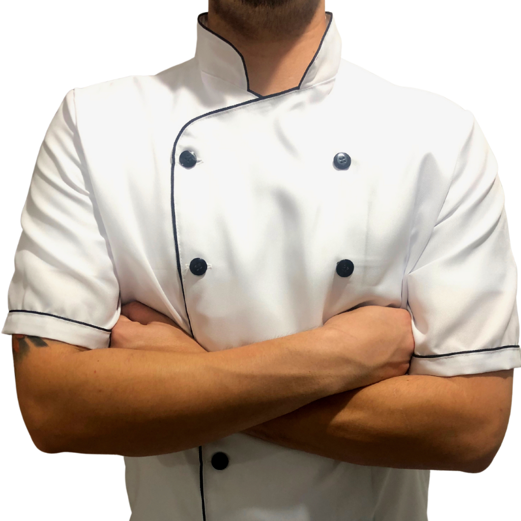 Dolma Chef de Cozinha Oxford UNISEX manga curta branco com vivo preto