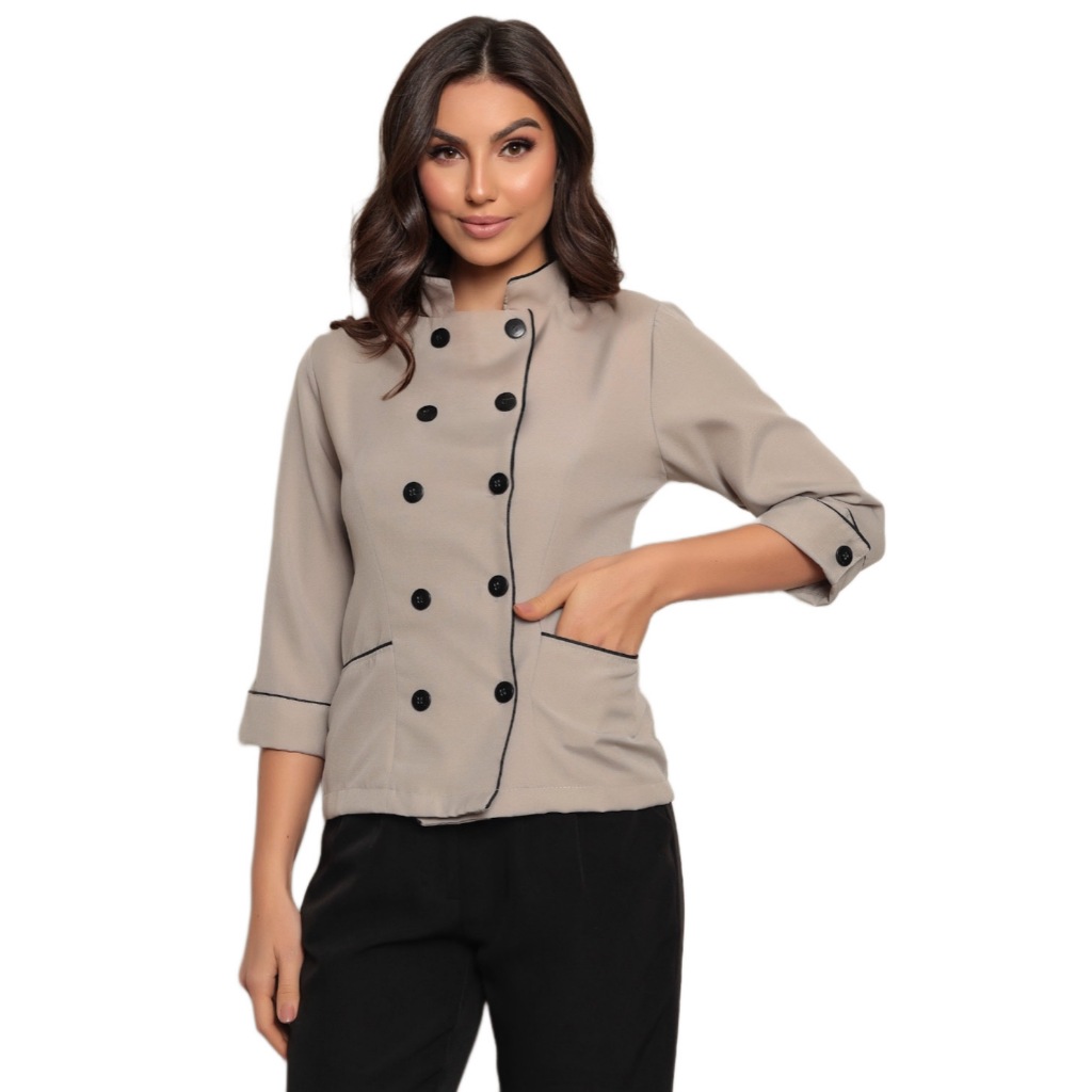 A Gardenia Jalecos acredita que o universo chef pode e deve ser fashion, alegre e confortável sem perder a seriedade que o profissional da área exige. Temos como missão oferecer um produto sofisticado, com qualidade, durabilidade e segurança, para os profissionais que anseiam por ter mais elegância e visibilidade em seus ambientes de trabalho. Há mais de 30 anos no mercado de jalecos e uniformes profissionais. Dolma Feminina Ivy Disponível nas cores: Branco Rosa Claro Preto Bege Roxo Azul Marinho Pink Produto feito em Oxford Premium de Altíssima qualidade e durabilidade. ATENÇÃO: Temos a linha chef completa, com todos os tipos de toucas, aventais, saias, e calças para uniformes de chef. Por favor, clique sobre o campo "Mais anúncios desse vendedor" e confira. A Dólmã Feminina Chef Manga 3/4 da Gardenia Jalecos é ideal para qualquer profissional no restaurante ou indústria similar. Projetado para oferecer durabilidade e conforto. Quando as coisas ficam complicadas na cozinha você pode contar com Dolma Chef Gardenia, projetada para deixar suas roupas limpas. Você também será capaz de se mover livremente, enquanto experimenta um nível superior de conforto: Lavagem Industrial amigável; Abotoamento frontal com oito botões; Acabamento resistente à mancha; Bolso Termômetro na manga esquerda; Tecido Poliéster 100%