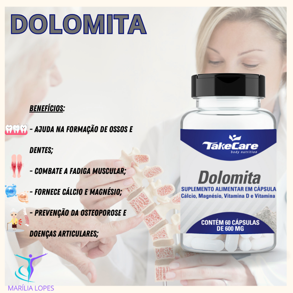 | Dolomita com Magnésio Vitamina D3 e K2 60 capsulas Take Care 2 mese... este produto | R$ 21,90 | 37% | 4.9/5 | — |