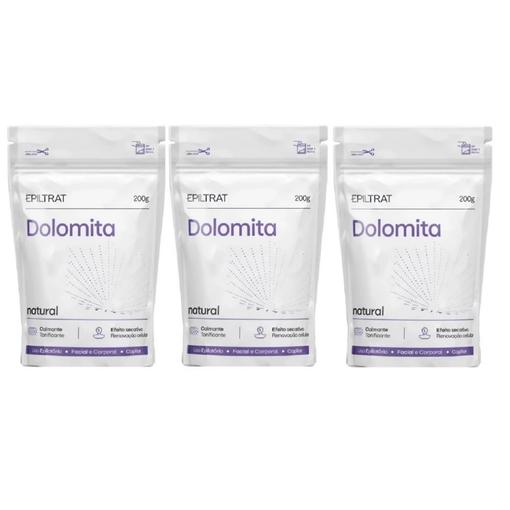 A Dolomita Epiltrat possui agente mineral 100% natural com propriedades que desobstrui os poros e remove a oleosidade e a sudorese. Pode ser usada como máscara facial e corporal, auxiliando no processo de renovação celular deixando a pele com o tom mais uniforme. No couro cabeludo, excelente desintoxicante capilar. Como pré-epilatório, substitui o talco, preparando a pele para um protocolo de epilação conffortável e eficaz. No pós-epilatório, ajuda a acalmar e tonificar a pele. Modo de uso: Pré-epilatório: Higienizar a pele com a Loção Adstringente Epiltrat. Com a pele seca, espalhe a Dolomita onde será realizada a epilação. Estética, corporal e pós-epilatório: Aos poucos, adicionar água mineral ao pó e mexer até virar uma pasta homogênea. Aplicar na região desejada, com auxílio de uma luva ou pincel. Deixar agir por 20 minutos. Após esse tempo, remover a máscara de Dolomita com água corrente ou gaze umedecida.
