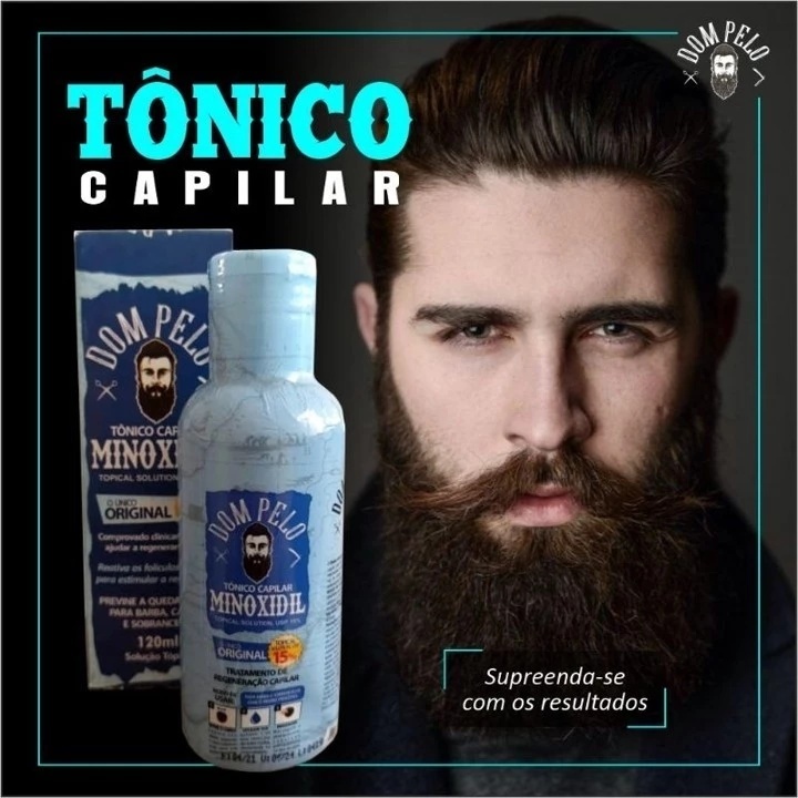 Dom Pelo Original – Tônico Capilar 120 ml Tratamento nutritivo e fortalecedor para cabelo, barba e sobrancelha. Ideal para quem busca: Estimular o crescimento capilar Fortalecer fios e reduzir queda Deixar a barba mais cheia e uniforme Hidratação e cuidado diário Benefícios: ✅ Fortalece e revitaliza os fios✅ Preenche áreas com falhas✅ Indicado para barba, cabelo e sobrancelha✅ Uso diário e prático✅ Fórmula original com alta concentração (15%) Instruções de uso: Aplicar gotas diretamente sobre o couro cabeludo / barba / sobrancelha, massageando levemente até penetração. Uso recomendado conforme necessidade. Conteúdo da embalagem: 1 frasco de 120 ml do tônico capilar Dom Pelo Original.