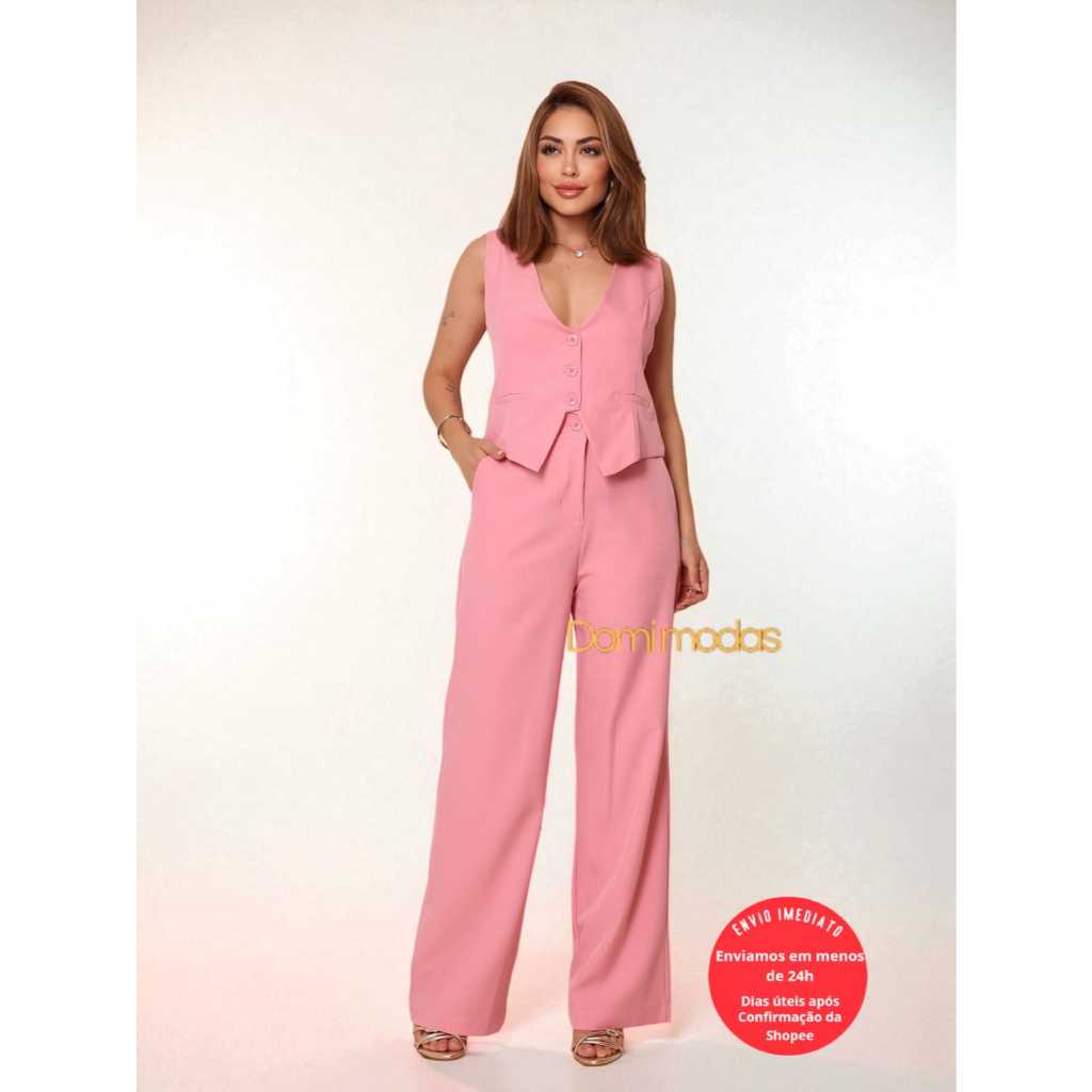 Domi Modas- Conjunto Feminino Calça e Colete Luis Twill 90802