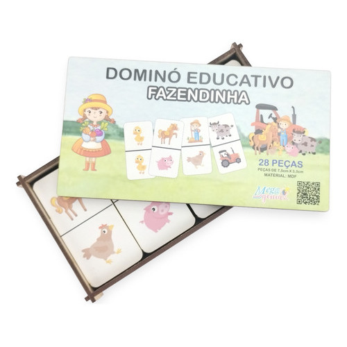 Dominó Jogo Educativo Infantil Fazendinha 28pcs Mdf criativo Pedagógico