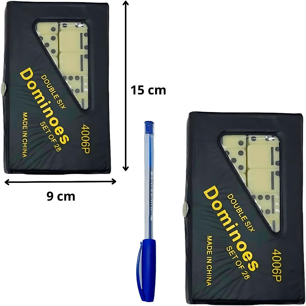 *COMPRA 100% GARANTIDA* *O KIT ACOMPANHA* 28 peças de dominó 01 estojo de cor sortida *MEDIDA DAS PEÇAS* - 4 x 2 cm por 0,10 cm de espessura *DÚVIDAS FREQUENTES* 1- Os produtos são novos? R: Sim, trabalhamos apenas com produtos novos. 2- O produto está disponível à pronta entrega? R: Sim. Trabalhamos apenas com pronta entrega. Todos os nossos produtos estão em estoque e aguardando sua compra :) 3- Acabei de comprar, quando será despachado? R: Se o seu pedido ter a CONFIRMAÇÃO DE PAGAMENTO LIBERADA antes das 16:00h, será despachado no mesmo dia. Caso contrário, será despachado no próximo dia útil no primeiro horário =) 4- Outras dúvidas? Nos pergunte pelo chat que responderemos em menos de 1 minuto. *REGRAS DO JOGO DOMINÓ: Para jogar, são necessárias 28 peças retangulares. Cada pedra está dividida em 2 espaços iguais, que aparece um número de 0 até 6. As pedras abrangem todas as combinações possíveis com estes números. O objetivo do jogo é colocar todas as suas pedras na mesa antes dos adversários e marcar pontos. A partida se encerra quando um jogador ou dupla alcança a quantidade de pontos indicada nas opções de mesa. Pois é, este jogo é ótimo para todos e para todas. Tipo de Garantia:Garantia Do Fornecedor