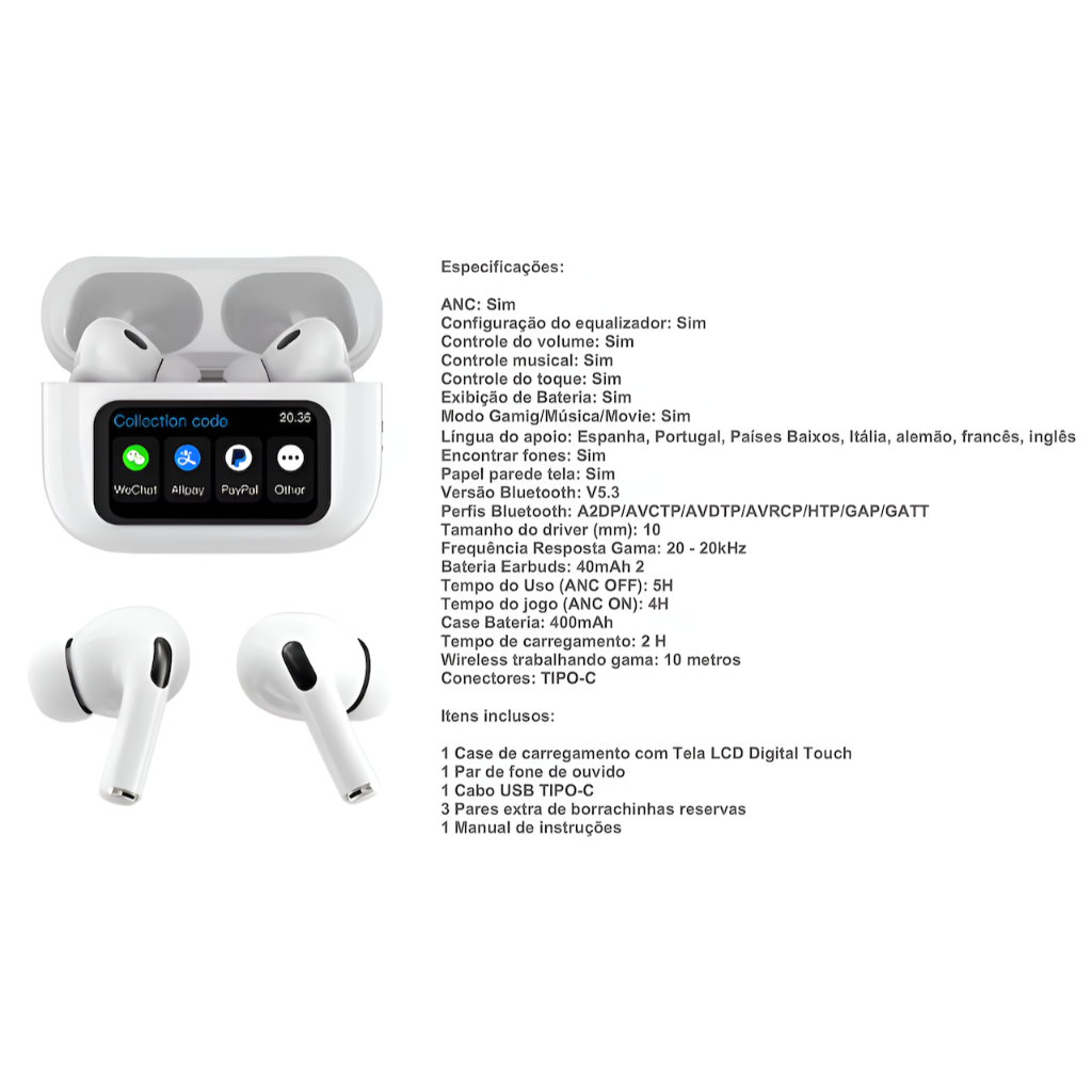 Caixa Slim, o aparelho acompanha apenas o cabo de carregamento! Doogee S200 + Fone UFB10 Tela: IPS FHD+ 6.72 Memoria Interna: 256 GB Memoria Ram: 32 GB sendo (12 GB Física + 20 GB Virtual) Processador: MediaTek Dimensity 7050 – Octa-Core (2x Cortex-A78 + 6x Cortex-A55) Camera Traseira: 100 MP + 20 MP (Visão Noturna) + 2 MP Camera Frontal: 20 MP Bateria: 10100 Mah Android 14 Dual SIM Sensores especiais: Acelerômetro, Giroscópio, Proximidade, Bússola, Leitor de digital, Sensor de luz ambiente. Fone UFB10 - ANC: sim - Controle do volume: sim - Modo gaming/música/movie: sim - Língua do apoio: espanhol, português, holandês, italiano, alemão, francês, inglês - Versão bluetooth: v5.3 - Bateria earbuds: 40mAh - Case bateria: 400mAh - Conectores: tipo-C Itens inclusos: - 1 case de carregamento com tela LCD digital touch - 1 par de fones de ouvido - 1 cabo USB tipo-C - 3 pares extras de borrachinhas reservas ATENÇÃO: NOSSOS PRODUTOS SÃO FILMADOS E PESADOS ANTES DO ENVIO PARA EVITAR FRAUDE OU GOLPE!
