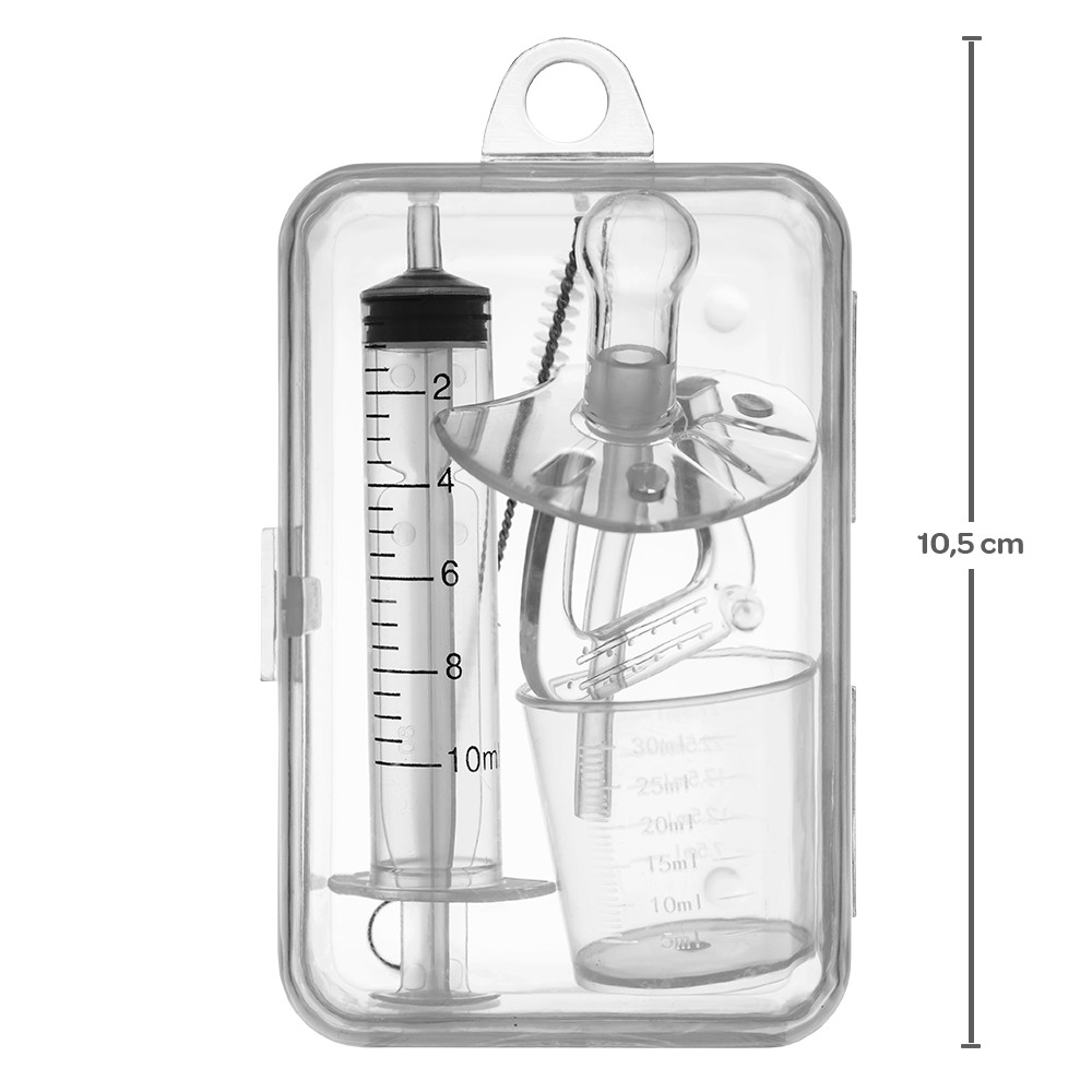 =============== DESCRIÇÃO: =============== O Dosador de Remédio com formato chupeta da Buba ajuda no difícil momento de medicar seu bebê. Com ele é possível administrar doses precisas de remédio. Seu formato de chupeta em silicone facilita a ingestão do medicamento pelo bebê, pois faz com que o líquido ultrapasse a região sensitiva do paladar, diminuindo seu sabor. Acompanha um bico em formato de chupeta, uma seringa de 10ml, um copinho dosador e uma escovinha para facilitar a limpeza das peças. E também um estojo higiênico para manter as peças protegidas. É recomendado esterilizar o produto em água fervente antes do primeiro uso e higienizar após cada uso. - Livre de BPA e ftalatos. Produto 100% atóxico; - Desenhado especialmente para ministrar doses precisas em medicamentos para o neném. - Super prático para ministrar o medicamento com a dose recomendada. - Bico em silicone macio possui um formato que facilita a ingestão, diminuindo a chance do bebê desperdiçar ou engasgar. - Ajuda nos cuidados com a saúde do bebê. =============== ESPECIFICAÇÕES: =============== Marca: Buba Material/Composição: Chupeta: 100% Silicone Escova: 100% Aço + 100% Náilon Copo: 100% Polipropileno (PP) Seringa: 100% Polipropileno (PP) + 100% Borracha Conector: 100% Silicone + 100% Polipropileno (PP). Idade Mínima Recomendada: A partir de 0+ meses. - APROVADO PELO INMETRO =============== ITENS INCLUSOS: =============== 01 Estojo, 01 Seringa de 10ml, 01 Bico, 01 Copinho dosador e 01 Escovinha de limpeza. =============== ENVIO IMEDIATO. =============== =============== EMBALAGEM =============== Todos os produtos são embalados cuidadosamente de forma a evitar quebras, riscos e qualquer dano durante o transporte.
