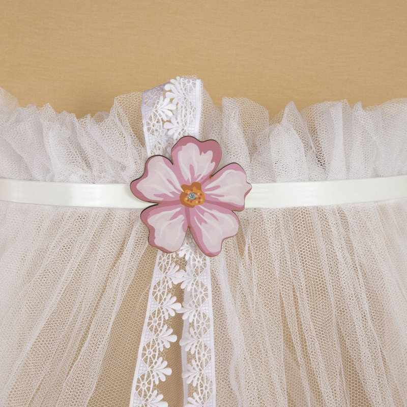 Dossel de Parede Flor Rosa Liso Com Mosquiteiro para Berço
