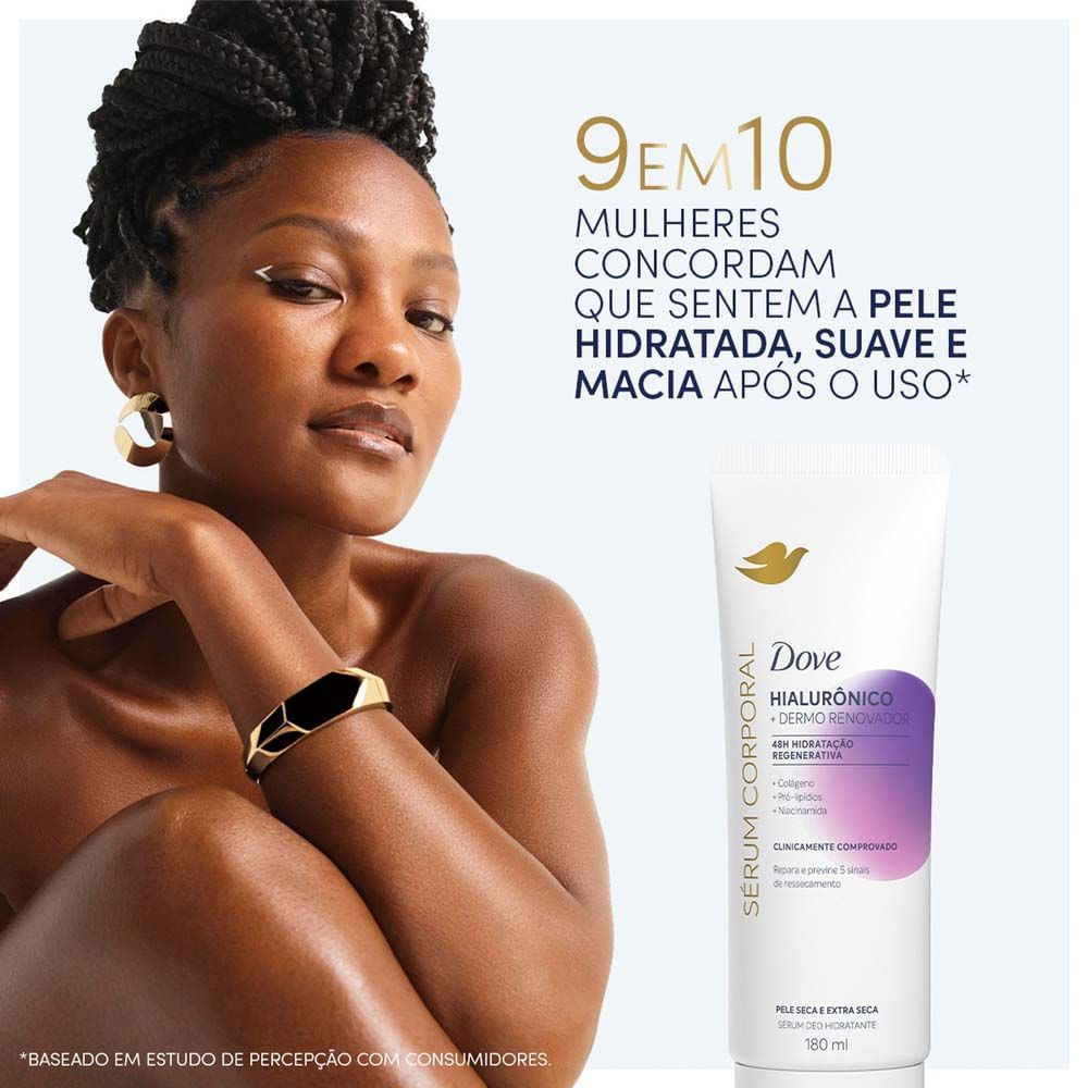 Dove Sérum Hidratante Corporal Hialurônico + Dermo Renovador ? Hidratante corporal com ácido hialurônico ? 48h de hidratação regenerativa para pele seca e extra seca ? Fórmula enriquecida com colágen