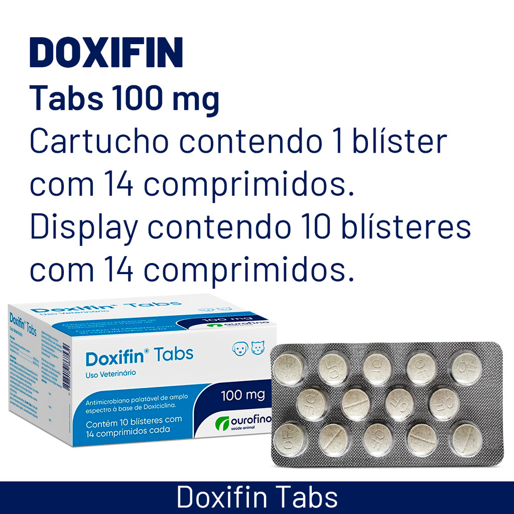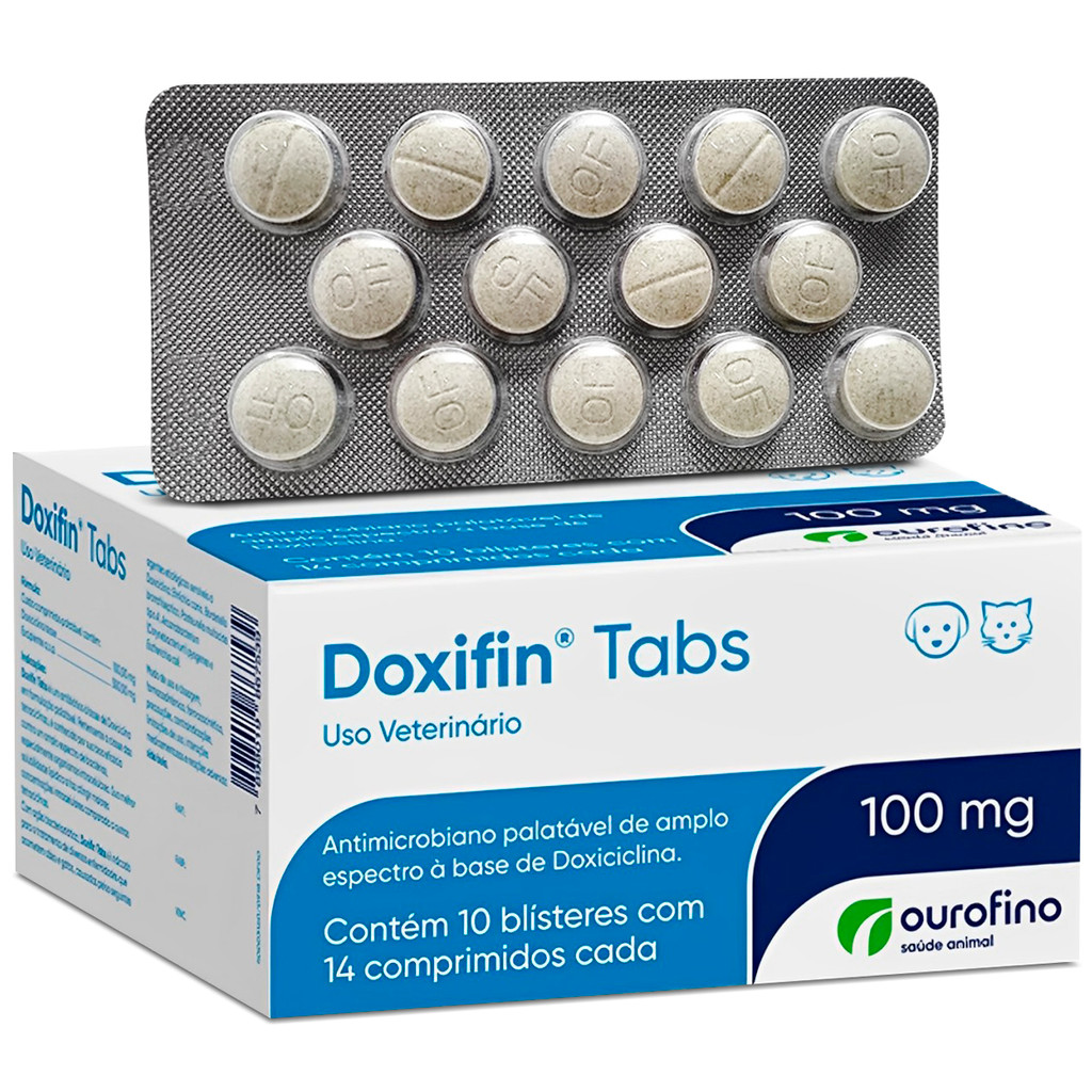 Doxifin 100mg Antibiótico para Cães Ourofino – Display com 10 cartelas de 14 Comprimidos