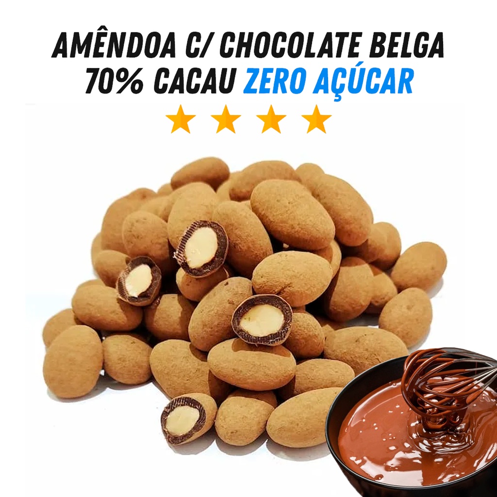 A PRONTA ENTREGA- ENVIO EM ATÉ 24 HORAS ÚTEIS! - SEM LACTOSE - SEM GLÚTEN -ZERO AÇÚCAR -PRODUTO DE PRIMEIRA LINHA! A P&P Linha Fit é uma empresa especializada em produtos naturais. Com uma estrutura de ponta para a manipulação de alimentos, fracionamos as sacas e vendemos em embalagens ideias para o nosso consumidor final. A política da Garantia de Satisfação faz com que nossos produtos passem por um rigoroso controle de qualidade levando o melhor produto a mesa do nosso cliente com um preço justo. Na P&P quem compra, volta! Amêndoa coberta com Chocolate Belga 73% sem açúcar! Um absurdo de gostoso! Ótima opção de lanche, pré-treino ou apenas para matar a vontade de consumir doce. Escolha entre as opções: 100g 200g 500g Ingredientes: Amêndoa, massa de cacau, gordura vegetal, maltitol, emulsificantes, lecitina de soja. Restrição alimentar: não contém glúten, pode conter derivados de castanha de caju, amêndoa e nozes