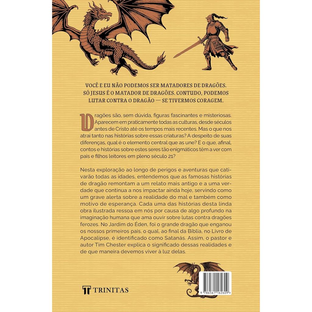 Você e eu não podemos ser matadores de dragões. Só Jesus é o Matador de Dragões. Contudo, podemos lutar contra o Dragão ― se tivermos coragem. Dragões são, sem dúvida, figuras fascinantes e misteriosas. Aparecem em praticamente todas as culturas, desde séculos antes de Cristo até os tempos mais recentes. Mas o que nos atrai tanto nas histórias sobre essas criaturas? A despeito de suas diferenças, qual é o elemento central que as une? E o que, afinal, histórias de dragões têm a ver com o leitor moderno, em pleno século 21? Nesta exploração cativante ao longo de diversas lendas e contos sobre dragões, heróis, perigos e aventuras, entendemos que as famosas histórias de dragões remontam a um relato mais antigo e a uma verdade que continua a nos impactar ainda hoje, servindo como um grave alerta sobre a realidade do mal e também como motivo de esperança. Cada uma das histórias desta linda obra ilustrada ressoa em nós por causa de algo profundo na imaginação humana que ama ouvir sobre lutas contra dragões ferozes. No Jardim do Éden, foi um dragão que enganou os nossos primeiros pais e, ao final da Bíblia, no Livro de Apocalipse, o dragão é identificado como Satanás. Assim, o pastor e autor Tim Chester explica o significado dessas realidades e de que maneira devemos viver à luz delas.--- Há uma grande diferença entre contos de fadas e fatos históricos. Contos de fadas não aconteceram de verdade. Eu não acredito em dragões. Ainda assim, acredito no grande Dragão ― em Satanás. Não acredito em cavaleiros de armadura brilhante resgatando donzelas em perigo. Mas acredito em Jesus, o Deus que se tornou homem, o homem que enfrentou o Dragão, o Matador de Dragões que morreu para conquistar a donzela. A maioria das histórias de dragões que conhecemos apresentam um roteiro genérico ou esconde em sua estrutura uma verdade mais fundamental, uma inspiração sobre um relato mais antigo e mais importante do que podemos imaginar à primeira vista? Dragões e matadores de dragões é uma aventura encantadora pelos contos e lendas mais famosos que instigam crianças, jovens e até mesmo adultos, mostrando como todos estão interligados e, no fim das contas, refletem a história real do Grande Matador de Dragões. 14x21cm 112 Páginas