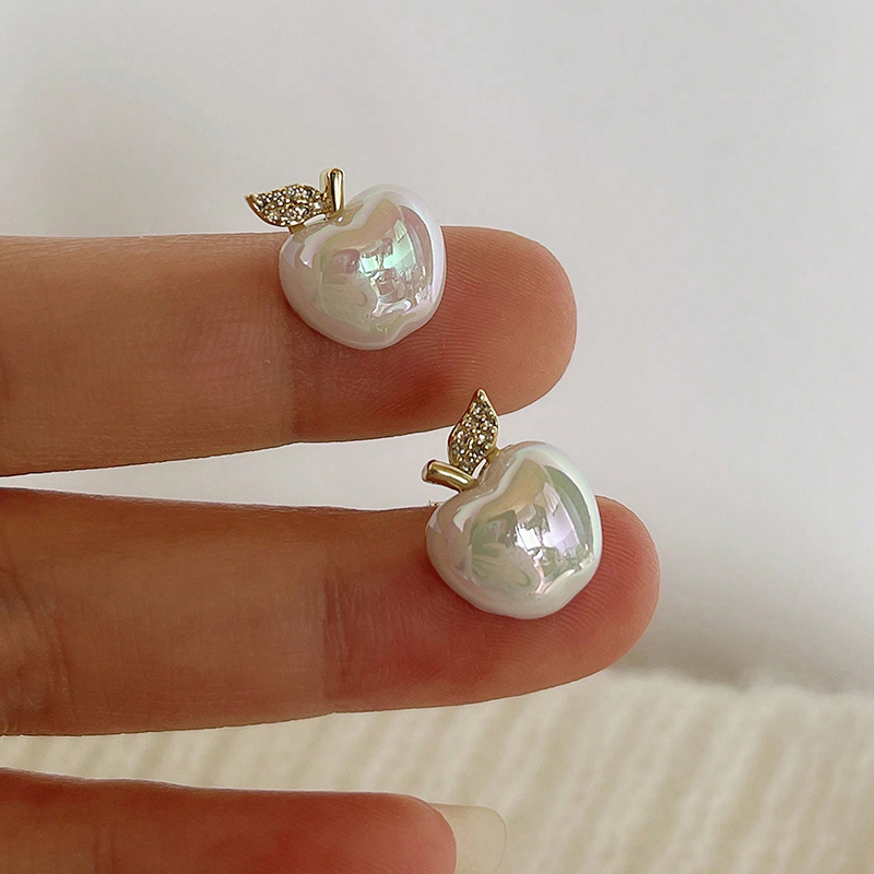 DREJEW Brincos De Diamante Em Formato De Maçã Com Agulha De Prata , Joias Simples Da Moda Para Mulheres