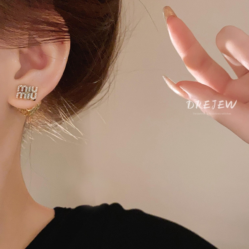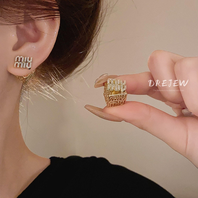 DREJEW Sier Needle Europeu E Americano Vovó Quadrado Dupla Face Moda High-end Estilo Frio Brincos Para Mulheres Hipoaler