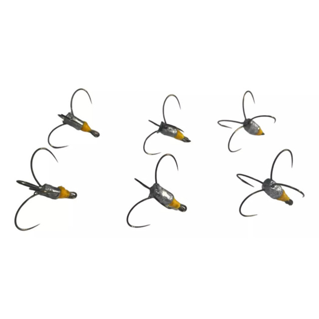 KIT 6 UNS DRONE SEM FARPA ANZOL MEITOU 16 Ideal para pescaria de batida. Ideal cevar o local antes de iniciar a pescaria! **Podem ocorrer pequenas mudanças no formato do chumbo, por se tratar de um produto artesanal!**li