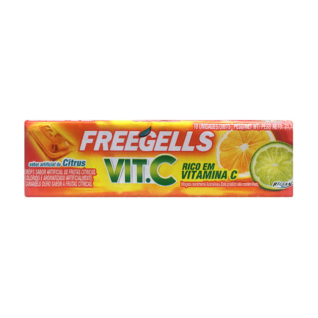 DROPS FREEGELLS VIT C CITRUS O Drops Freegells VIT C tem um delicioso sabor citrus e é rico em vitamina C. Ingredientes: Açúcar; xarope de glicose; acidulantes ácido cítrico e ácido ascórbico; regulad