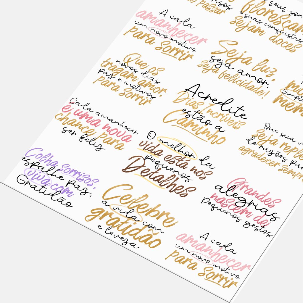 DTF UV Frases Motivacionais 5 A4–Adesivos para Produtos Rígidos