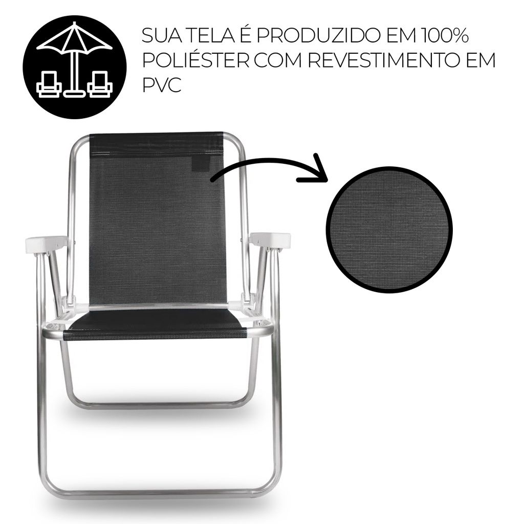 Duas Cadeiras Alta Praia Camping Piscina Verão Bel Preto 71cm Alumínio Confortável Dobrável