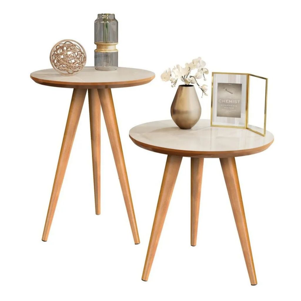 Duas Mesas Laterais Sofa Sala Canto Madeira Pés Palito Lindas