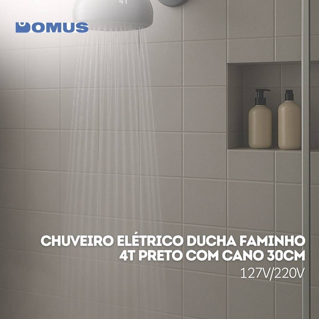 Ducha Chuveiro Elétrico Faminho Fame 4 Temperaturas Preto com Cano 30cm