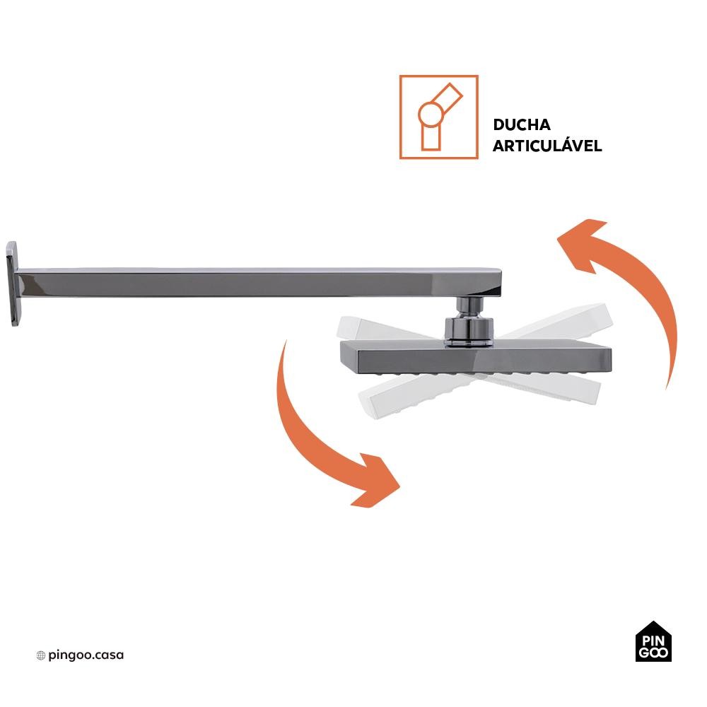 A Ducha Chuveiro Quadrado de Parede Tucuruí - Pingoo - Prata oferece conforto e praticidade para o seu banho. Seu formato quadrado e os bicos de diferentes tamanhos garantem uma distribuição equilibrada da água, proporcionando tanto fluxos suaves quanto mais intensos. Essa tecnologia cria um efeito de "chuva natural", tornando o banho mais relaxante e eficiente. Com acabamento cromado, a Ducha Tucuruí é fácil de limpar e manter, adaptando-se a diversos estilos de banheiro com um toque moderno e sofisticado. Medidas: 47,5 cm (C) x 8,5 cm (A) x 20,0 cm (L) Acabamento: Cromado Material: Metal Cor: Prata Instalação Parede Chuveiro Elétrico: Não Pressão Min/Max 5 a 40 Mpa É misturador: Não Conteúdo da embalagem: Ducha Chuveiro Quadrado de Parede Tucuruí Anéis de Vedação Sistema de fixação