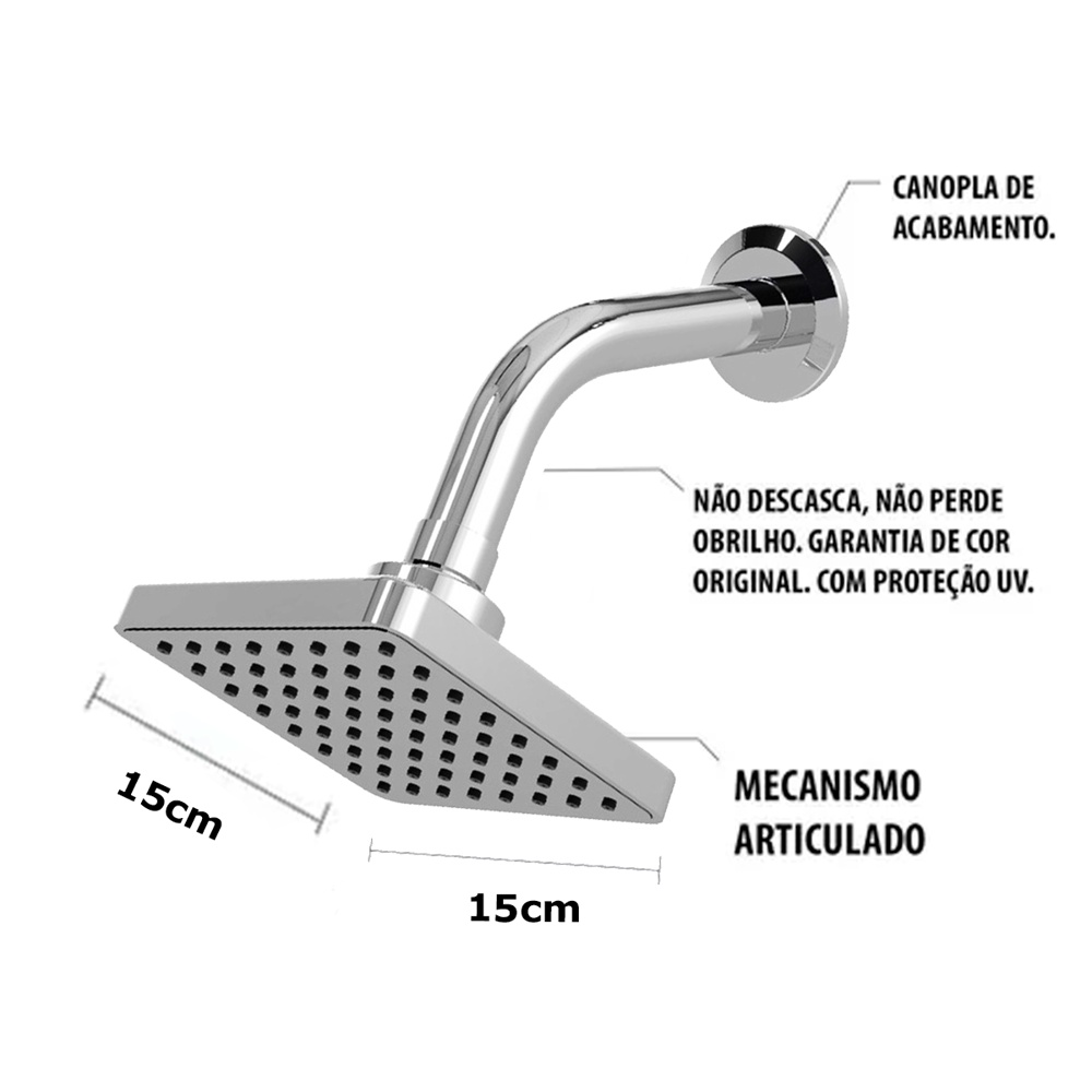 Ducha Chuveiro Quadrado Em ABS De Aço Inox Alta Pressão Combo Kit Parede Área Externa tem frete grátis?