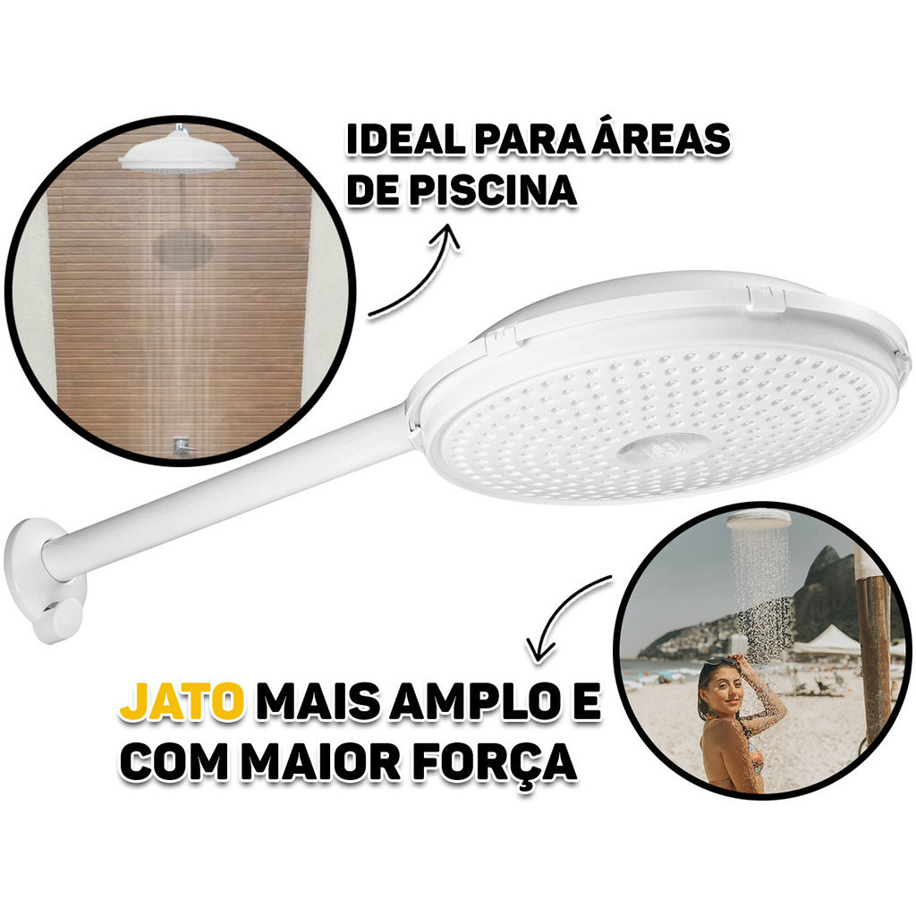 Ducha GranDucha 8 Pol Chuveiro Para Área Externa Praia Piscina Formato Oval Jato Forte Branco Tigre