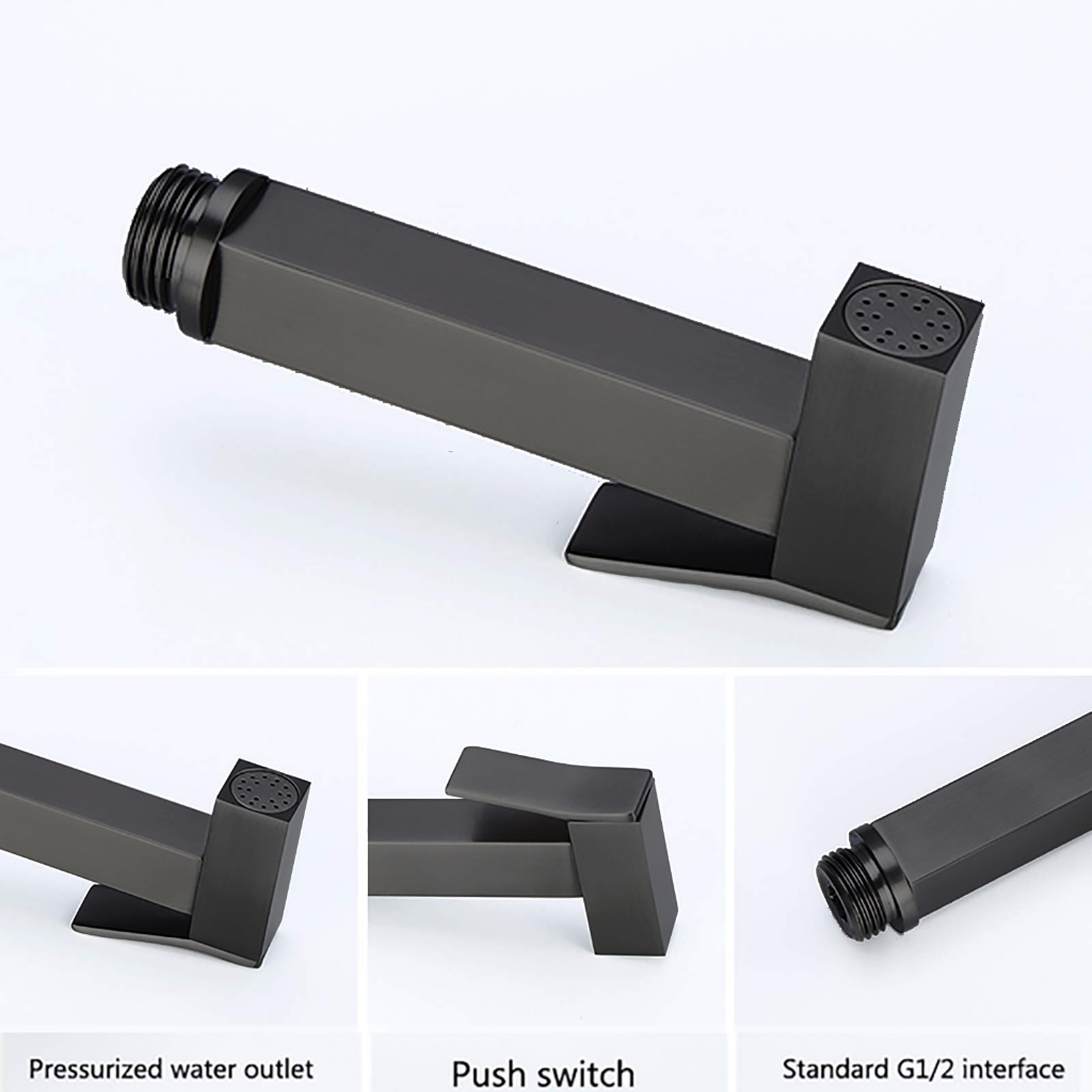 Ducha Higienica Para Banheiro Quadrada Preto Fosco OBS: manter o registro fechado en quanto não estiver utilizando, que por contada pressão da água pode ocasionar vazamento. Descrição: Revitalize a sua mente, corpo e alma com uma ducha estimulante. Nosso modelo repleto de funcionalidades fornece uma gama de sensações, de modo que você pode ter o banho dos seus sonhos. Esse modelo possui a tecnologia para distribuição de água equilibrada para cada bico, feita completamente em metal, com durabilidade e luxuosidade agregando a praticidade para garantir uma vida de aparência perfeita, desenvolvido para serem usados com nossos modelos de suporte de parede, que compartilham do mesmo Informações Técnica: Modelo: Quadrado. Articulável: Dispositivo que permiti ajustar ela na inclinação desejada. Conexão: 1/2 Padrão. Acabamento: Preto Material: Metal Pressão Mínima: 4 m.c.a. Pressão Máxima: 32 m.c.a. Suporte Altura: 4,5 cm Comprimento: 4,5 cm Largura: 4 cm Material: ABS Registro Altura: 3 cm Largura: 2,5 cm Comprimento: 6 cm Material: Metal Abertura: 1/4 de Volta. Conexão: 1/2 (2 cm) Acabamento: Brilhante Peso: 0,483 kg Mecanismo de vedação 1/4 Volta com pastilha cerâmica. Mecanismo que permite a economia de água em até 50% em relação a um mecanismo convencional. Ducha Higiênica com utilização de Gatilho da Ducha Higiênica Quadrado. Itens Inclusos: 1 Gatilho ducha em metal 1 Registro base em metal 1 Mangueira em metal (150cm) 1 Acabamento canopla 1 Suporte gatilho em metal + parafusos p/ fixação Na abertura e fechamento do mecanismo 1/4 volta o consumo/desperdício é em torno de 84 ml d’água para o processo completo de abertura e fechamento, enquanto que no sistema vedante esse consumo é em torno de 970 ml, pois ela precisa de 5 giros para completar o ciclo de abertura/fechamento.
