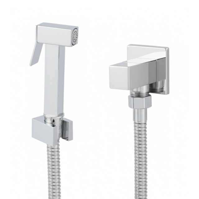 Ducha Higiênica Chuveirinho Banheiro Quadrada Metal Inox Engate 1,20 Super Luxo Cromo Premium