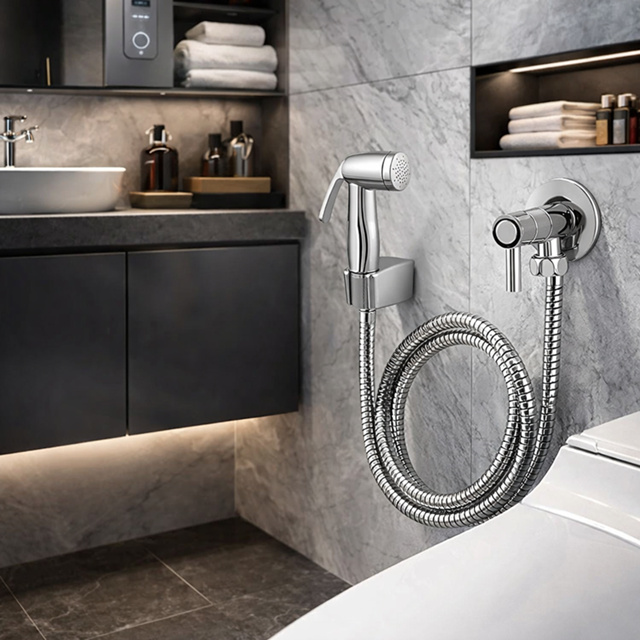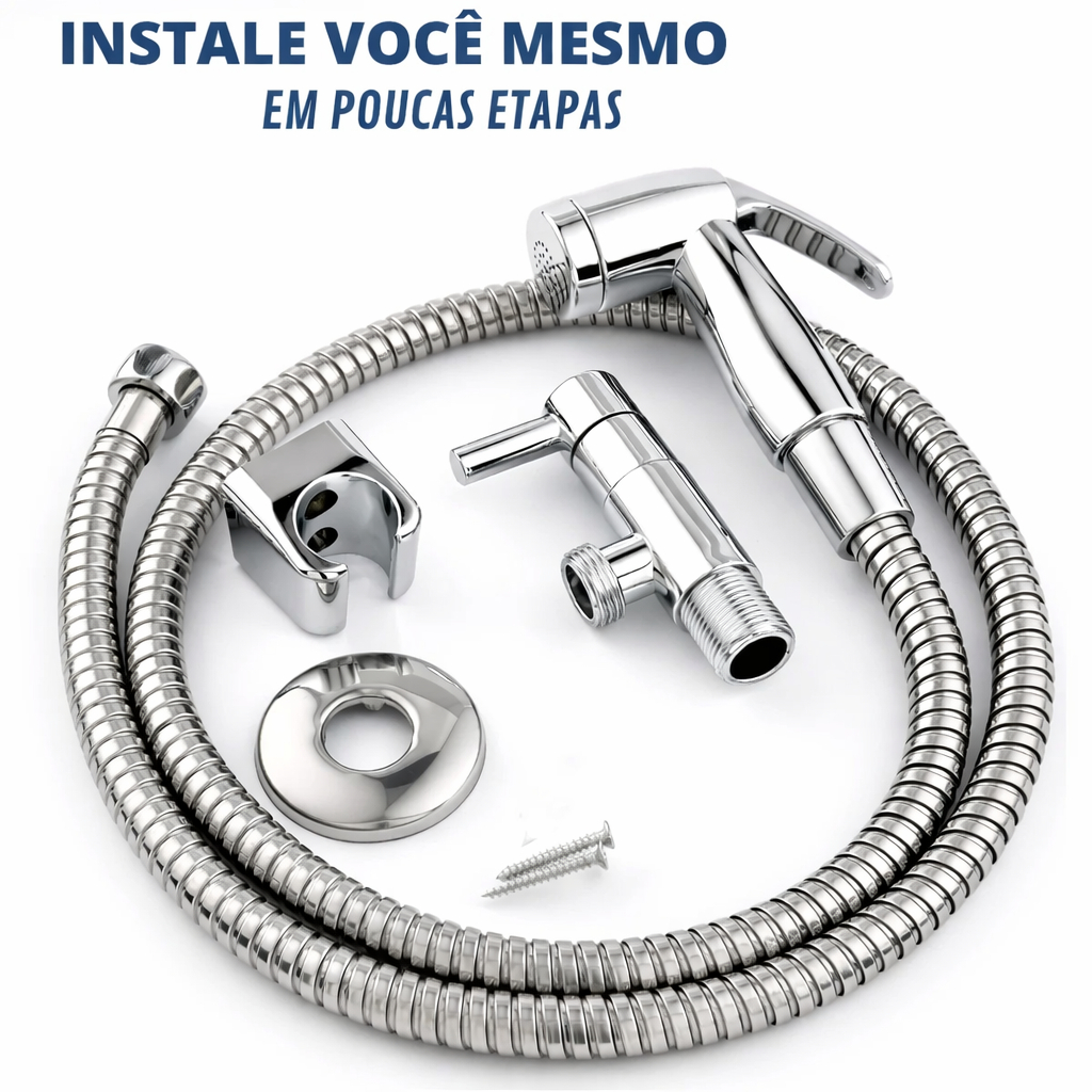 Ducha Higiênica Completa Inox Cromada Redonda Flexivél 1,2m Abs Premium Bonow Metais