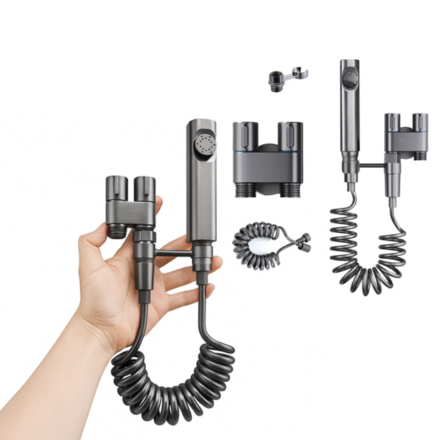 Ducha Higiênica Dubai Metálica com Registro Duplo e Mangueira Retrátil (Com Bidê e Máquina de Lavar) 🌟 Praticidade e Higiene em um só produto! Transforme seu banheiro em um espaço mais funcional e limpo com a Ducha Higiênica Dubai, feita em aço inox de alta qualidade, resistente à ferrugem e à corrosão, garantindo durabilidade e segurança no uso diário. 💧 Controle Total da Água Torneira com duas saídas e registro independente, permitindo controlar separadamente a água da mangueira retrátil e da varinha de bidê. Mais conforto e economia, sem interferir no fornecimento geral de água do banheiro. 🛁 Versátil e Multiuso Ideal para diversas situações: Bidê higiênico Limpeza de fraldas de pano Banho de pets Higienização de vaso sanitário, chão e utensílios Rega de plantas e limpeza de eletrodomésticos Proporciona higiene pessoal completa, deixando sua rotina mais prática e saudável. ⚙️ Especificações Material: Aço inoxidável Tamanho: 6 x 5,2 x 4,3 cm Cor: Preto 📦 O pacote inclui: 1 x Chuveirinho higiênico 1 x Mangueira retrátil 1 x Registro duplo (válvula de controle) 1 x Suporte para parede 1 x Acabamento para parede